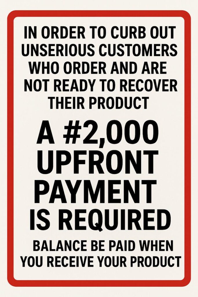 PLACE YOUR ORDER NOW AS PRICE GOES BACK TO #65,000